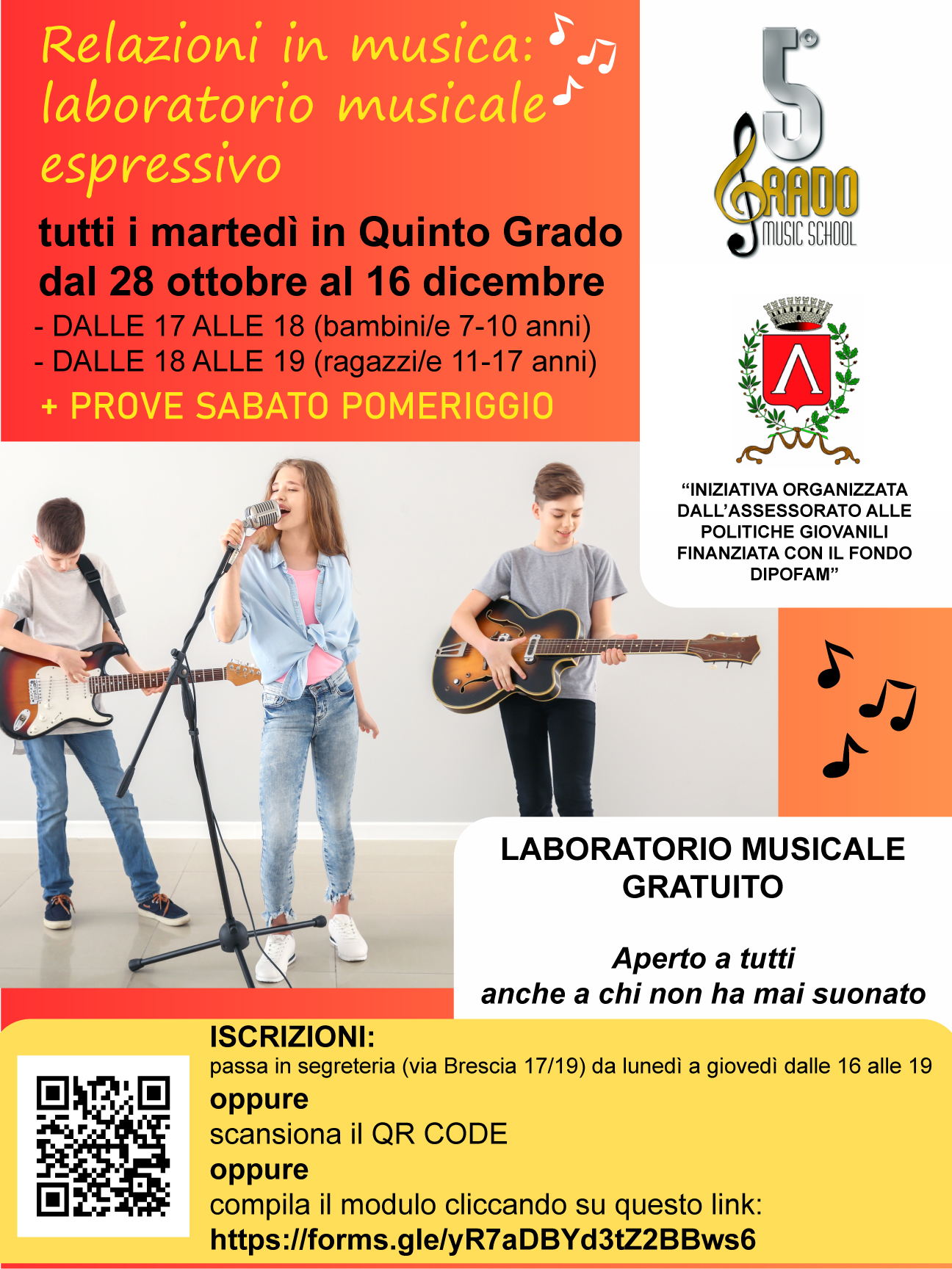 l'assessorato alle politiche giovanili, grazie all'adesione e finanziamento DIPOFAM, propone numerose attività gratuite per giovani residenti 0-17 anni; scegli quella che fa per te e trascorriamo del tempo insieme ! 🤩